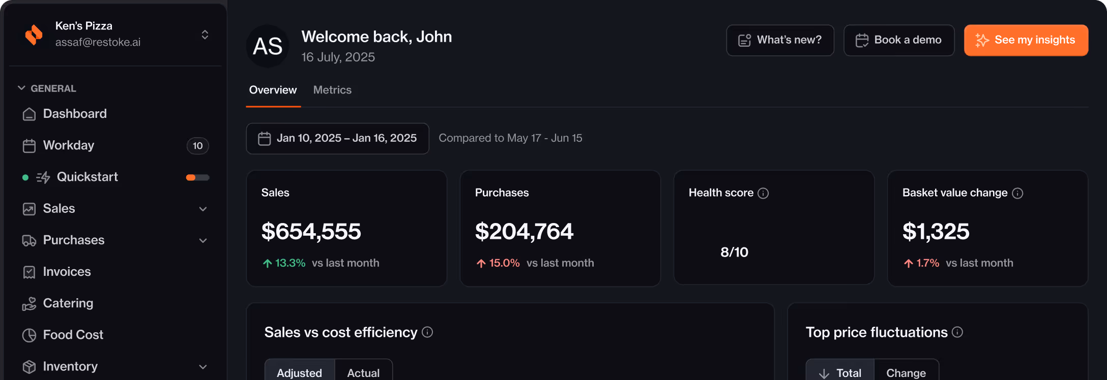 AI takes your purchases and updates menus, recipes and COGS so youâre always in control.